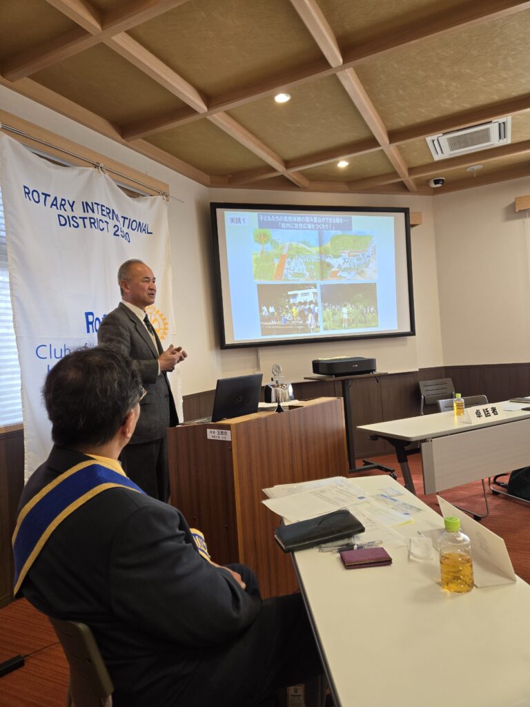 2026年1月8日 第2625回例会 青少年交換留学生 オリバー君おめでとうございます!誕生日プレゼント!! 卓話 : 「ふるさと侍従川に親しむ会」顧 問・尾上 伸一 様【持続可能な地域とくらしの実現】について